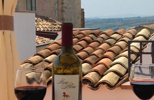 Upstairs from the bedroom there is a small terrace which has a private view of the church dome, which is exceptional when illuminated in the evening. The perfect place for a glass of good Aglianico! (Yes, the church tower has a bell which rings during the day, but again, with walls which are two feet thick it shouldn't be a problem.) Up again to the larger terrace area, where there is a 10 by 10 foot gazebo, barbeque, hose hook-up, and splendid views in every direction. Laundry dries incredibly fast up here. High speed internet is always available via wifi.