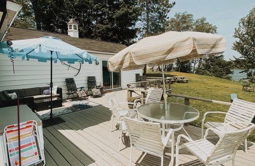 Water sport enthusiasts look no further. Public boat launch within a mile with dock space at the home available. Fishing, swimming, kayaking or just plain relaxing right at the waters edge of 185ft of gorgeous bay frontage. Large deck and outdoor yard with multiple seating areas, firepit, propane grill, 2 kayaks, canoe, fishing poles, yard games and more!