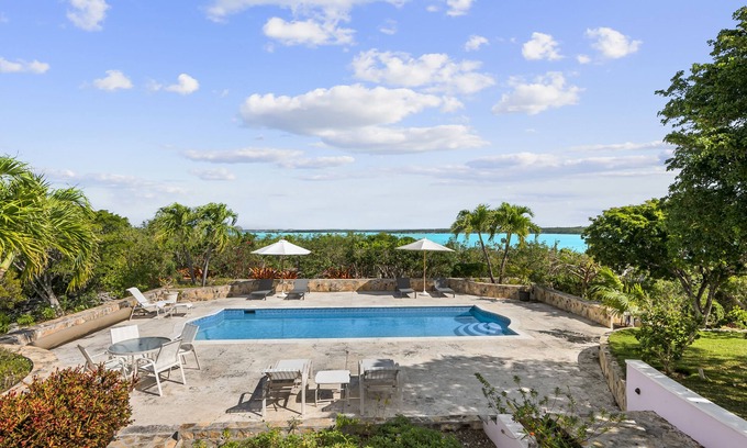 The Pink House vacation rental, magnificent pool and view over Elizabeth harbor | House in Exuma