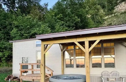 Welcome to The Quarry! Nestled along the De Soto bluffs and Great River Road, this cozy cabin retreat has everything you could ask for. Full kitchen, bathroom, master bedroom with full size bed, loft space with three twin beds, TV, games, outdoor patio, fireplace, endless river views, and hot tub of course!