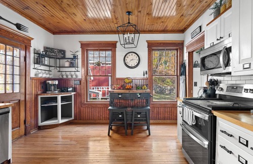 Since 1906, the Red Hemlock has sat perched above the hamlet of Arkville, in the shadow of Dry Brook Ridge. Less than two miles from Margaretville, 11 minutes from Belleayre Ski Mountain, and walkable to Arkville, it offers the unique combination of privacy and convenience. Built in 1906 by master carpenters, the property recently underwent a full renovation to bring in all modern conveniences, without compromising the historic craftsman charm.