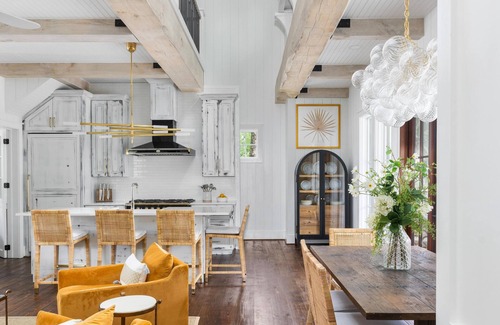 • Vaulted ceilings with exposed beams and abundant natural light create a warm, welcoming great room