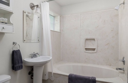 Your home away from home in Salado with 1 bedroom. Nestled in the heart of this charming city, our hotel suites offer a fantastic retreat for guests. With AC to keep you cool, our quaint and inviting bedroom provides a cozy haven for a restful night's sleep. Wake up refreshed and ready to explore all that Salado has to offer. Whether you're strolling through the picturesque streets or indulging in the local cuisine, you're sure to make amazing memories with a stay at our place.