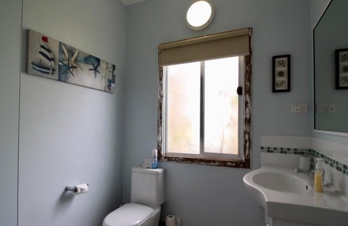 The Sandcastle is the quintessential Aussie beach house -with a large verandah to relax on while laying in the hammock enjoying the views over Flinders bay the house is an easy living sweep it out holiday house. 1 bedroom with a Queen bed, 1 with a Queen bed and a bunk and a small bedroom with another bunk bed,. Open plan kitchen/dining/living and an outside BBQ area and second toilet.