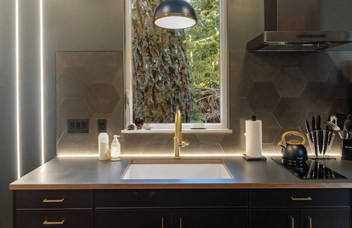 The Sea Container Cabin is a brand new, one of a kind short term rental cabin in Index WA. This luxurious container cabin is designed with high end finishes, a custom white marble & lava rock steam/rain shower, Sonos speakers throughout, surround sound movie zone with 65" Frame TV, multiple in wall LED light sculptures, floating glulam, steel, & LED stair case, and a rooftop hot tub that delights guests and exalts their souls. Book your stay today and experience something truly special.