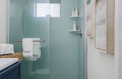This unit offers everything you need for a relaxing stay. The bathroom showcases vintage charm, while the patio invites you to unwind and enjoy direct access to our serene outdoor courtyard. Whether you're cooking in or soaking up the Vilano Beach ambiance, The Shoreline Apartment is your perfect retreat at Haley's Court.