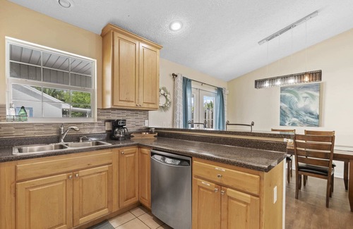 Escape to your oasis at the Splash House! You'll have two unique spaces with a spacious main house and a separate adorable casita. Lounge in style by the beautiful saltwater pool, complete with new outdoor furniture, a covered patio, and a BBQ grill.
