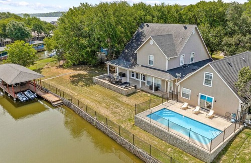 The best Spot in Granbury! Just minutes away from Granbury's Historic Square where you can indulge in eclectic boutiques, local dining or catch a quick live show at the Granbury theatre or Opera House. This house is built for large groups and entertaining with the gorgeous in-ground pool and covered patio over looking the private boat dock. Enjoy boating, fishing or swimming all right out your backdoor.