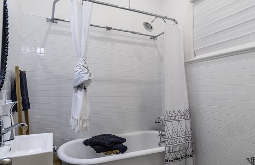 Whether you are coming for work or play, high ceilings and large windows provide tons of natural light, and complement the rustic and eclectic feel of the space; you will truly feel like you are in a cottage in the middle of a city. With a thick (12") double bed and fully restored clawfoot tub and rainfall shower, this space is perfect for two people to enjoy a romantic getaway or for longer term business travelers looking to unwind.