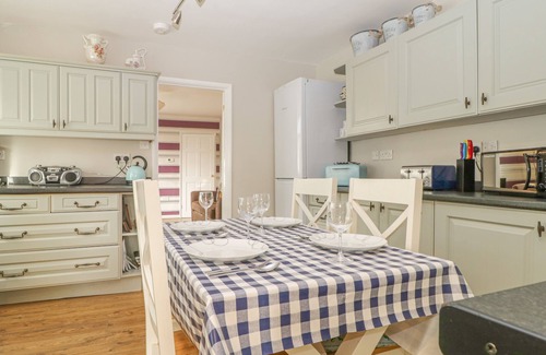 Amenities: Gas central heating with electric fire. Electric oven and gas hob, microwave, fridge with ice box, dishwasher, washing machine, TV with Freeview and WiFi. Fuel and power inc. in rent. Bed linen and towels inc. in rent. Travel cot and highchair available. Off-road parking for 3 cars. Enclosed lawned garden and raised terrace with furniture and BBQ. One well-behaved pet welcome. Sorry, no smoking. Shop 0.1 miles and pub 0.1 miles