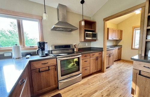 Handicap accessible, 3000sq. ft, 2-story home with walk-out lower level to fenced-in yard w/basketball court & patio w/grill & fire pit. Property sits on 7 acres with 1/2 mile of groomed walking trails. Three bedrooms, 3 full baths, full kitchen. Sleeps up to 6. RV hook-up available for $30/day. Roku TVs. Exercise/fitness room. Come with friends and family to enjoy a secluded weekend entirely on site, or mix up the fun with close-by beaches, hiking/biking trails, fruit farm tours and more.