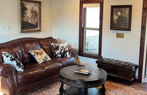 Located in the North Texas hill country, this newly remodeled 1880's two-story home offers guests a relaxing and luxurious stay in the countryside. This home boasts numerous amenities including a cozy living room with an electric crackling fireplace, Fiber Optic Internet, 55" smart-TV, a luxurious master bedroom with a large en-suite bathroom and smart TV, laundry room washer & dryer, two large upstairs bedrooms with king beds, central AC, a fully-equipped kitchen and front porch country views.