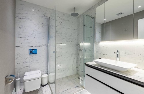 Welcome to our brand new unique stylish deluxe 1BD/1Bath condo residence in the heart of the city! With mesmerizing views of Istanbul! Comes with an indoor/outdoor pool, tennis and basketball court. Our unit has fully equipped amenities to enjoy! With floor heating, A/C and a fully equipped kitchen this energetic condo is the perfect home away from home! Comes with WIFI and Netflix! Would be a pleasure to host you here.