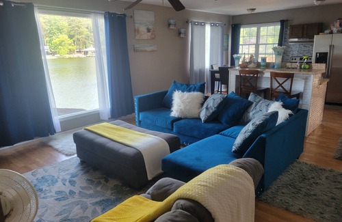 Our home is only a few feet from the water's edge. With several ways to easily access the lake. One way offers easy access for the kids, by taking a series of steps into the lake. Another way is to take a dive off the floating dock, or just enjoy the lake on the stable dock with the most fantastic view of the lake.
