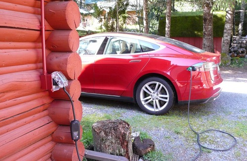 Electric car charging station on site