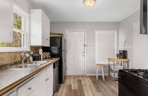 Experience the comforts of home in our newly remodeled 3-bedroom abode, conveniently situated few blocks away from shops, restaurants, and grocery stores. This property offers a full kitchen, laundry room, and all the bathroom essentials. With a contactless remote lock system, you can effortlessly access the home at your convenience, providing a secure experience. Only 15 minutes from the Air Force base and 20 minutes from the casino our home offers both convenience and comfort for your stay.