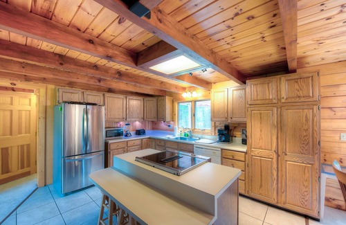 Escape from reality and experience the getaway of a lifetime at this retreat! This family-friendly, three-story getaway is simply out of this world; nothing but comfort and relaxation will surround you when you step inside this rural yet elegant house. The main level is actually the second level, where you'll find the living area (the fireplace is not for guest use) with a set of comfortable sofas and a TV - the perfect place to gather for Netflix nights. You'll also find the dining area and a well-equipped kitchen with all the appliances you could ever dream of to create delicious meals and snacks. The large deck has an outdoor dining area and a gas grill - ideal for homestyle cookouts. The covered patio area offers a couple of comfortable chairs and a cute wooden swing, and the firepit is a great place to roast smores.