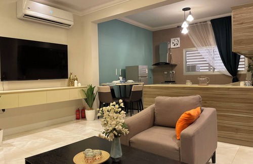 Nestled in the vibrant heart of Riyadh, this cozy two-bedroom apartments offer the perfect blend of comfort and convenience for your family or group. Just a 10-minute drive from Olaya, Kingdom Centre and Faisaliah Tower, and an excellent choice if you're visiting for treatment at the nearby hospital.