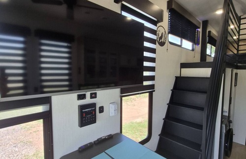 Welcome to Timberwolf, a one-of-a-kind Tiny Home with a decorated feel that put you in the wild. This park model RV is very contemporary with all the modern amenities you can imagine in an RV. This brand-new Tiny Home can sleep up top 6 people, 4 adults and 2 children. This RV actually has a loft! Located in the beautiful countryside of Northeast Oklahoma, you`ll be surrounded by nature and tranquility. Take a stroll to our large pond and try your hand at fishing or take in the beauty of our mile-long hiking trail. And don`t forget to bring your furry friend along – we have a brand new 5,000 square foot pet park for them to play and explore. Looking for a little friendly competition? Head over to our new pickleball court for some outdoor fun. We can`t wait to welcome you as our guest at the Timberwolf, where you`ll feel right at home in the great outdoors.
