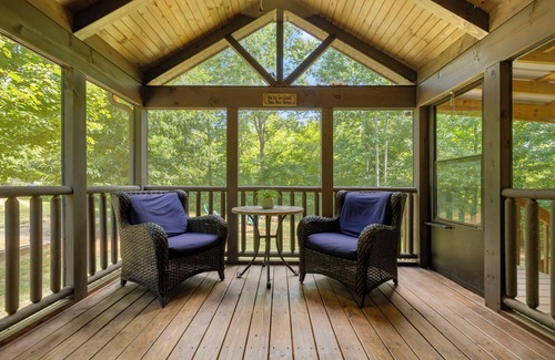 With only 400 square feet, it's best for a couple or single family, but sleeps up to 8. There are queen mattresses in the master bedroom, upstairs loft, and a queen pullout couch. There are also two built-in twin bunk beds. Upgraded kitchen with granite, stainless appliances, coffee maker, toaster, and microwave. Full bathroom with shower/tub. Large screened porch with a ceiling fan and room to relax, as well. We recently added a huge covered porch for added enjoyment outdoors.