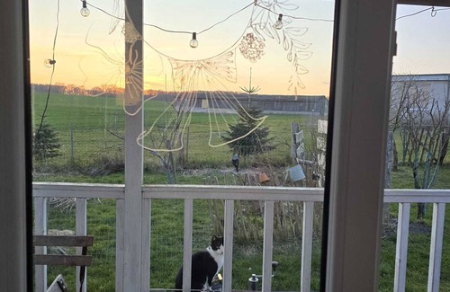 Our Tiny House with a total of 17sqm is very idyllic on our property with a view of the fields and a small vegetable garden.