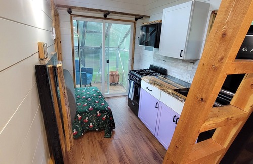 Tiny House in the meadow on Two Bit Creek. Minutes from Deadwood and Sturgis. Off the beaten path yet close to all the activities of the Black Hills. 200 sf Tiny home with large deck and plenty of Creekside access. Bedroom is a loft with a large skylight to count the stars. Ladder to the loft queen bed slides to open up the living area. Gas range, frig, RV toilet and Wi-Fi give you all the accommodations needed to enjoy this area. No Cell Service !!! Wi-Fi calling only. TV in loft is smart TV only. Room for trailer but will test your backing skills. Located 3 miles down a well-maintained dirt road and yet still biker friendly. This is basic living, but in a beautiful area. Easy access just 5 miles to Camp 5 trail head, hikers and UTV riders will love it too. Host home on property on other side of barn, 100yds away.