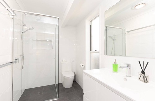 The main bathroom features a large shower, vanity and separate toilet. The master bedroom features an ensuite with large shower, vanity and toilet. The downstairs bathroom also features a shower vanity and toilet.