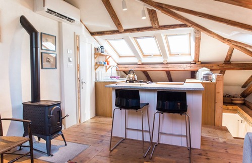 Tolmin center apartments are the Tolmin townhouse and Loft together. Behind one front door you find two separate entrances from the Tolmin townhouse and the Loft, where together can stay 10 persons with all comfort in 4 bedrooms with 2 bathrooms, a balcony and each apartment has its own sitting area. The Loft has airconditioning, the Townhouse a large fully equipped kitchen and the Loft a kitchenette. They are in the old center from Tolmin on walking distance from bars, shops and restaurants.
