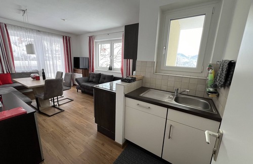 The newly built apartment with stunning views of the Dachstein, has 2 bedrooms with shower / WC and a spacious kitchen (with sleeping).