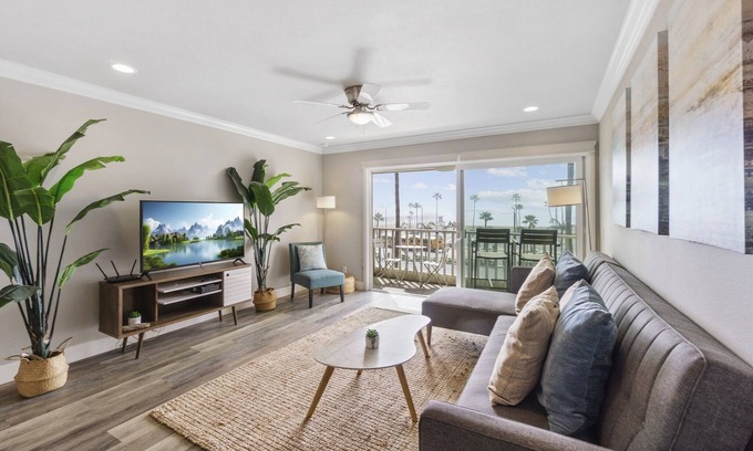 Located in Balboa Village on the Balboa Peninsula, it puts you within walking distance to restaurants, shops, and Balboa Fun Zone for the kids. The building sits right on the bike path and Balboa parking lot. Rent bikes and go for a nice ride along the sand. Take a walk to the end of the Balboa Pier and grab a milkshake at Ruby's Diner.