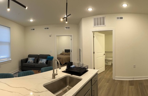 We are a group of nine 1-bedroom apartments inside a newly built thirty 1-bedroom apartment building (August, 2024). The nine units are designated as tourist homes licensed by the city of Richmond. It's off I-64 exit 193a, in a quiet and upcoming new development residential area. A short walk to the newly built Bon Secour Hospital Complex, it is less than 2 miles drive to the Richmond downtown area, home to many museums, events and conferences, and of course, popular restaurants and bars.