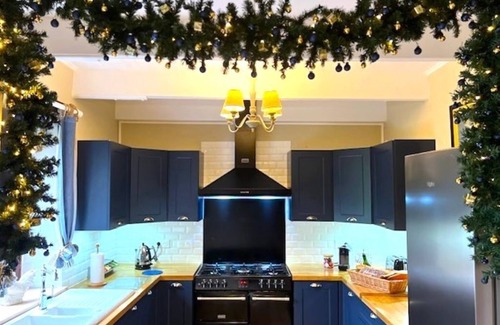 The entrance leads into the ground floor kitchen and dining space. The kitchen is fully-equipped with everything you would require to prepare everything from a simple snack to a multi-course dinner of haut cuisine. There is a large range cooker with 1½ electric ovens and gas hob; large fridge-freezer; microwave and dishwasher to assist with the cleaning up.