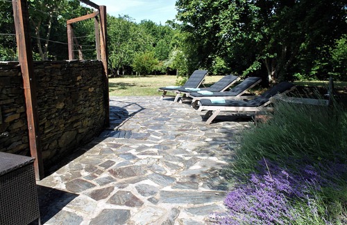 The house is built on a rocky slope of a valley. The property has an area of 11,200 m². Downstairs is a small river which is also the boundary of the domain. From the terrace you look out over the valley with a few meadows and fields.