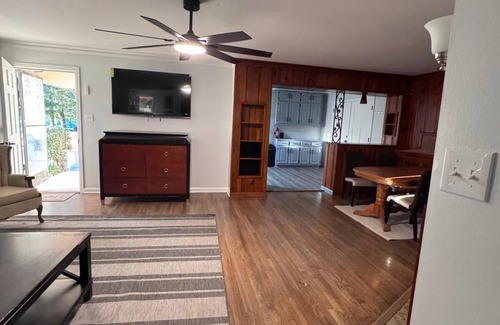 This 4-bedroom house in Southaven is perfect for your escape. With 2 king beds, 4 queen beds, and 3 bunk beds, there's plenty of space for all guests. The property boasts AC, iron, heating, and a hair dryer for your convenience. The 2 bathrooms are equipped with everything you need. It's easy to see why you'll be able to unwind at our place.