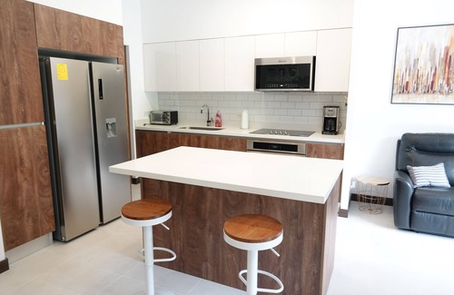 Experience a peaceful, centrally-located apartment for lease with breathtaking views. Every day presents an opportunity for a tranquil or vigorous workout surrounded by lush greenery and exotic landscapes. This secure top-floor residence offers stunning San Jose mountain views right from the balcony. The 1-bedroom with flex space is ideal for one or two guests. Brand new, fully furnished, and designed with a modern open plan that fills the space with natural light. The kitchen features quartz countertops, an island, and ample storage. Enjoy the perfect blend of exclusivity and premium service in one of San Jose's most upscale neighborhoods, close to restaurants, nightlife, the airport, malls, and more. You’ll love this place for its prime location, gorgeous views, inviting ambiance, and exceptional service. Ideal for business travelers or anyone seeking top-tier service in a prime location. Available for vacation, short-term, or long-term rentals.