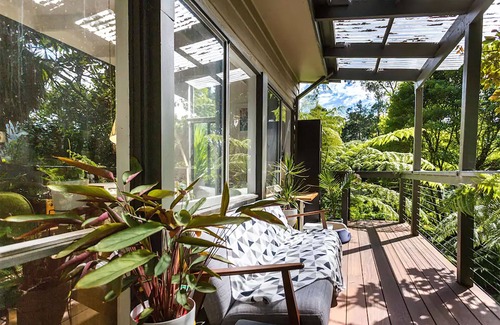 Escape to tranquility on the balcony's plush sofa, serenaded by nature's symphony. With high ceilings and captivating contemporary art, the space exudes elegance. Cozy up by the crackling wood-burning fire in the lounge. Outside, discover the expansive garden—a sanctuary for relaxation. Surrender to the allure of this enchanting retreat and immerse yourself in its beauty. Your perfect getaway awaits.