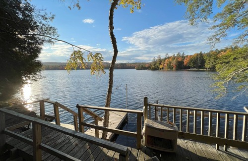 Take it easy at this unique and tranquil getaway! This lakefront home enjoys a prime location on Morrill Pond. Enjoy your own water-front deck with seating, rocking chairs and your own private dock to enjoy fishing, kayaking and paddle boarding. Three floors of outdoor space provides plenty of room and plenty of views for everyone!