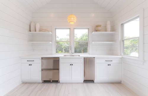 The cabana provides a relaxing outdoor escape equipped with refrigerated drawers, ice machine, flat screen television, and outdoor sonos speakers. You’ll find everything you need for the beach and pool in the outdoor storages, including pool toys, coolers, corn toss boards and more!
