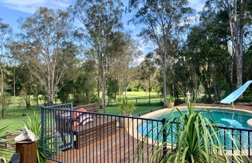 Tucked away in Cedar Creek, Tranquility Ranch is a peaceful farm stay set on 5 acres of natural bushland, with kangaroos, birdlife, and a friendly mix of goats, chickens, and ducks sharing the grounds. A tranquil dam sparkles at the center of the property, while the Albert River is just a short walk away.