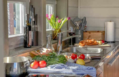 Experience in our dreamy pilot house the incredible idyll of the small fishing village Rieth am See. The house with its oiled wooden floorboards from the region and colors of Farrow and Ball reflects a Baltic Sea atmosphere that makes a holiday on the lake an experience. What could be better than going to the sauna in the Schäferwagen after a long walk on the water and ending the day by the fireplace with a glass of wine from your own wine rack?