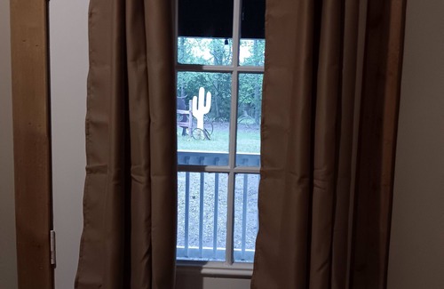 This well-appointed mini-cabin can only be rented in conjunction with one of our other cabins, as it DOES NOT have a bathroom. It is meant to be rented when extended family or large parties rent one of our other cabins with a bathroom and guests from this cabin will share the other cabin's facilities. It has a HUGE porch with gas fire pit. It has a brand new, comfy queen mattress. The cabin has a small table and two chairs with coffee pot. There is a rocking chair if you want to relax and enjoy a good book. The curtains are blackout curtains. The cabin is filled with antiques and souvenirs from around the world. We have themed all of our properties and named this one the Traveller. We describe it as Indiana Jones meets Harry Potter meets dark academia. It is super cute and cozy and quite romantic. However, again, can only be rented when another member of your party is renting one of our other cabins (Boho, Granny's or Lone Star themed cabins). Our cabins sit on 2+ acres full of beautiful, mature, and majestic trees. We are literally across the street from Canton Lake (and a short drive from at least a half a dozen other lakes) AND we are literally only 2 miles from Canton's World Famous First Monday Trade Days. We would love to have you...come relax in our "woods," that are just a minute or two from restaurants and shopping or beautiful nature trails/lakes. Smoking is not allowed inside the cabin and pets are not allowed. Children are welcome.