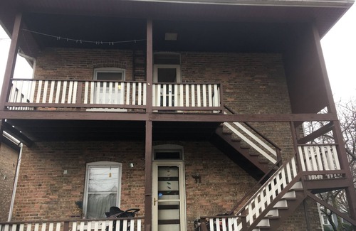 Discover the beauty of Oak Park from this Tree Top View next to Rehm Park, playground pool and conservatory in a fabulous 3-bedroom building. The bedrooms feature 1 king bed, 1 queen bed, 1 queen and 1 twin bed, ensuring a comfortable stay for all guests. Front and back private porches to eat, watch the sunset or have a meal. Enjoy the convenience of amenities like very fast WiFi, office space, fully stocked kitchen, heating, and AC. Our place will help you feel at home while you're traveling in Oak Park and easily into Chicago. Blue line 1/2 block or 290 highway 2 minutes away. 2 blocks to Fitzgerald’s music venue and Roosevelt Rd, 5 min walk to restaurants in 3 different directions- a great location for home base for a quick trip or longer stay close to Chicago with the calm of the suburbs.