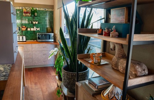 Dreamers is located right in the village of Mt Beauty so you can easily walk to ski shops, shops and restaurants. Tree Tops sleeps 5 people in the 2.5 bedrooms and 2 bathrooms located on the lower floor…up a wide internal staircase brings you to the living, dining, kitchen and outdoor courtyard/ balcony featuring a large TV, and fully equiped kitchen. The views thru the tree tops discover winter snow capped mountains and northern aspect winter sun. An idealic location to soak up the warm winter sun with a morning coffee or afternoon wine. An adjoining 3 bedroom/ 2 bathroom apartment called Garden House can be rented for a larger group sleeping up to 15 people so please message if interested.