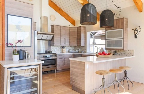 We are the perfect home to host you. With a fully stocked kitchen, pantry and lots of bedrooms and space this is the getaway you've been searching for. Large outdoor area with a large deck for dining, yoga and entertaining, large pool and spa, multiple lounge and play areas including bocce ball and cornhole. The pool is solar-heated during the summer. During the cold season, pool heating is available upon request for an additional cost.