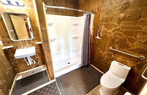 There is a bathhouse on site with full washrooms and showers for guests to use during their stay. You will be sent a map upon check in with access code