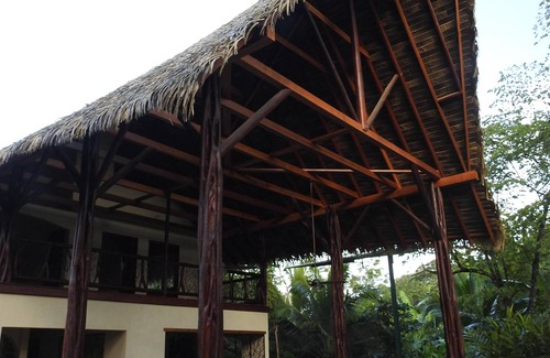Casa Luna Negra was built in 2017. This is a large two-story open-air tropical home. It was designed and built by craftsmen using the highest quality materials: it is our dream house. It is kept cool naturally by an open design with ceiling fans and a very high thatched roof. The hardwood furniture was locally made.