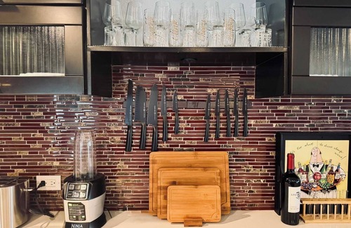 * KITCHEN: Completely stocked with everything you'll need...All kitchen items are new, not a mishmash of vacation rental leftovers.