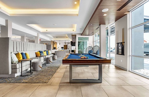 Recreational amenities at the hotel include a fitness center and a seasonal outdoor pool.