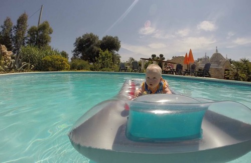 Trullo Santana offers 4 bedrooms, two bathrooms, sitting room and fully equipped kitchen. It boasts a fantastic swimming pool (16 x 8 m) in a tranquil setting. The trullo is situated between the towns of San Michele Salentino and Latiano making it ideally located for reaching many towns of Puglia including the UNESCO site of Alberobello, Ostuni which is known as the white city and Lecce to the south all of which boast magnificent architecture. A complimentary meal of Homemade Lasagne, Salad and Garlic Bread including wine and soft drinks awaits your arrival along with a continental breakfast for the following morning. Although this is a self catering holiday evening meals can be provided on request as can a babysitting service.