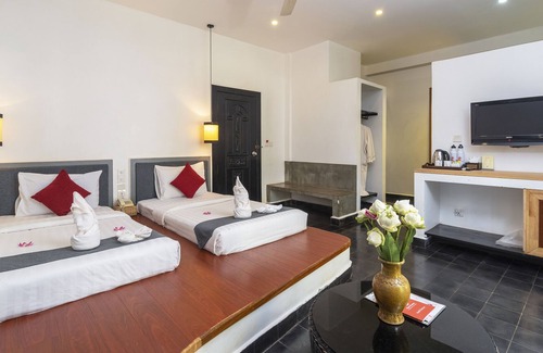 Apsara Greenland is a Haven of tranquility, features 20 spacious and comfortable rooms & suits and is located by 1.8 km from Old Market and Night Market of Siem Reap town and in the middle of local commune called Sala Kamroeuk village, 20 minutes away from the airport and Angkor Wat Complex. All rooms are modern designed with choices of pool or garden views, either a balcony or garden space. Equipped with air-conditionner, fans, minibar and TV. We invite you in a charming and relaxing property that includes a reception area, swimming pool, pool bar and lounge, restaurant and spa surrounded with tropical trees and plant features.